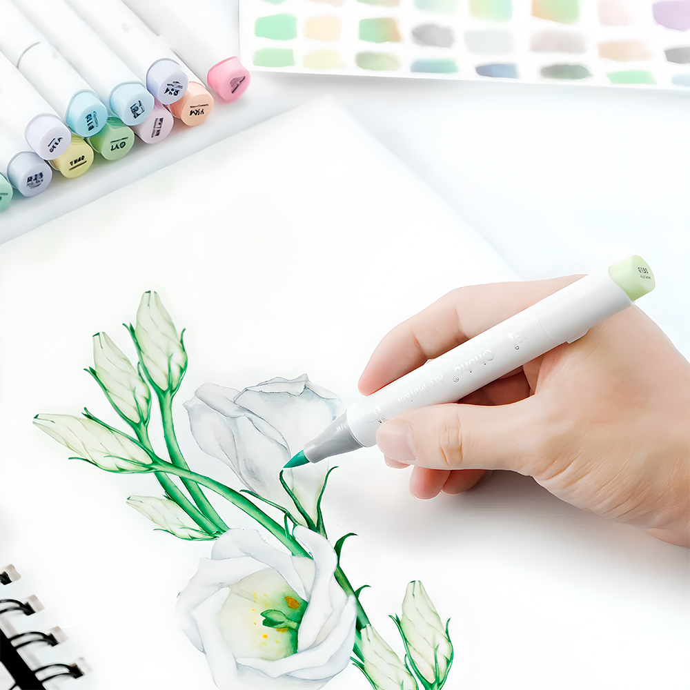 2. Versatilidade de Ponta Dupla Profissional: Cada marcador Ohuhu possui uma ponta pincel flexível para traços fluidos e detalhados, e uma ponta cinzel para preenchimentos amplos e linhas nítidas, garantindo transições suaves e cobertura uniforme em suas obras de arte.