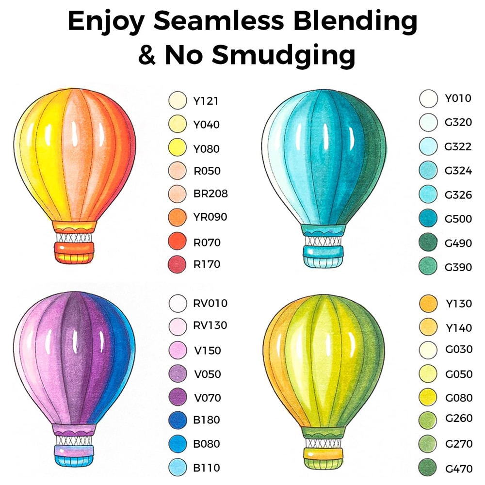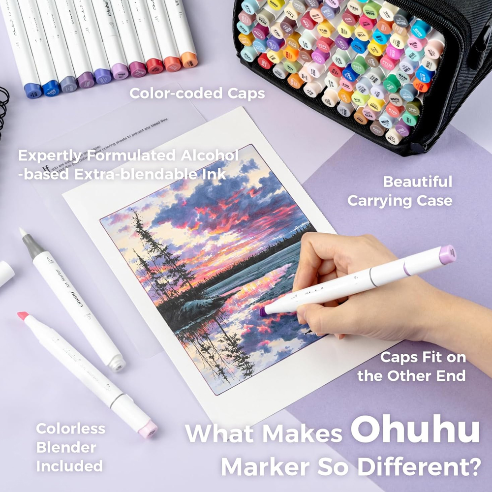 3. Experimente cores vibrantes e altamente pigmentadas que se misturam suavemente, criando transições de tonalidade impecáveis. A fórmula à base de álcool dos marcadores Ohuhu garante secagem rápida e evita manchas, ideal para camadas e sombreamento preciso.