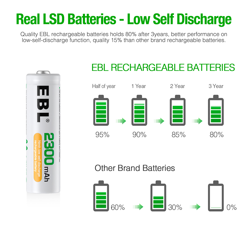 Pilhas Recarregáveis EBL AA 2300mAh Ni-MH 4 Unidades