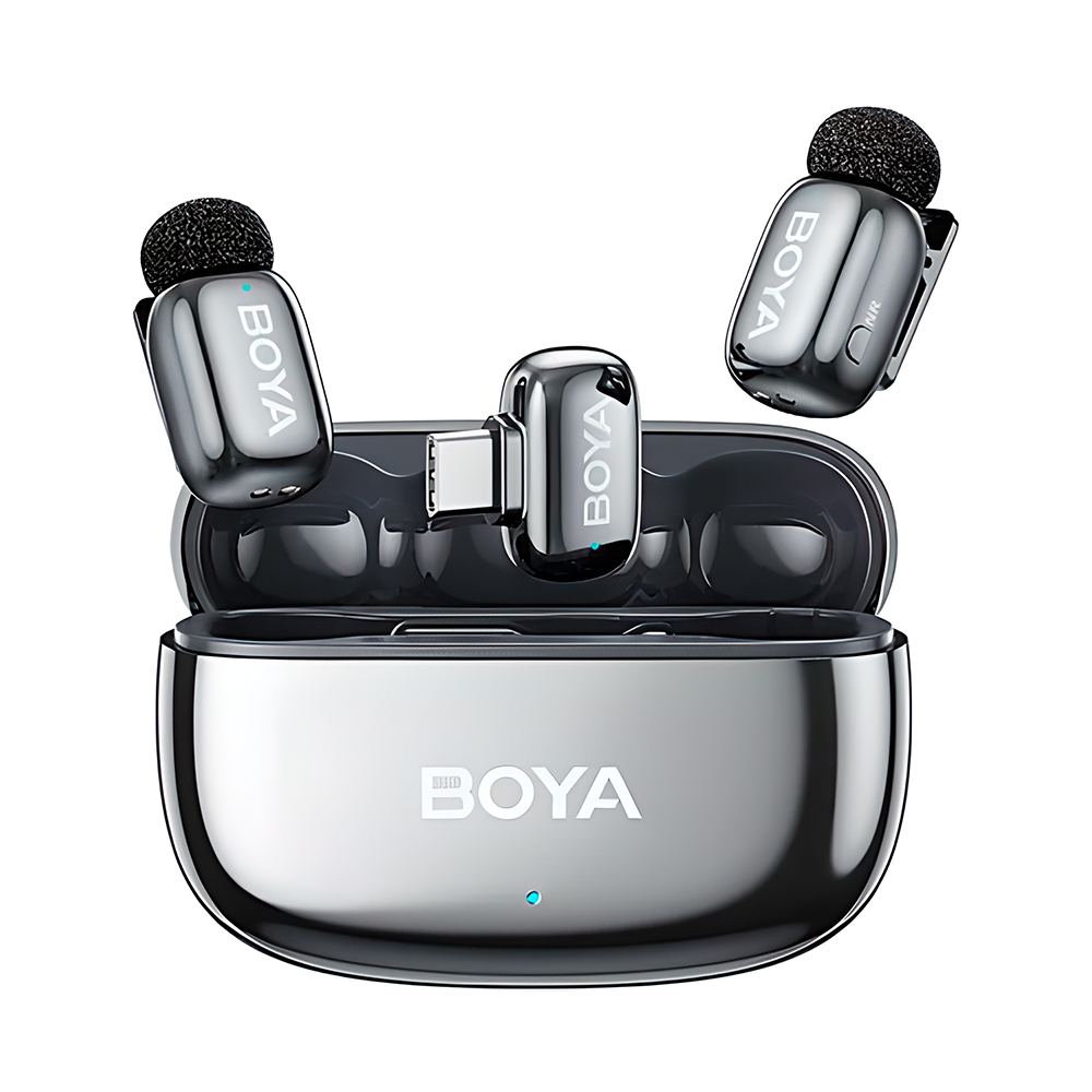 Microfone Lapela SemFio Boya Mini 2 USB-C IA-ANC Prata Lunar