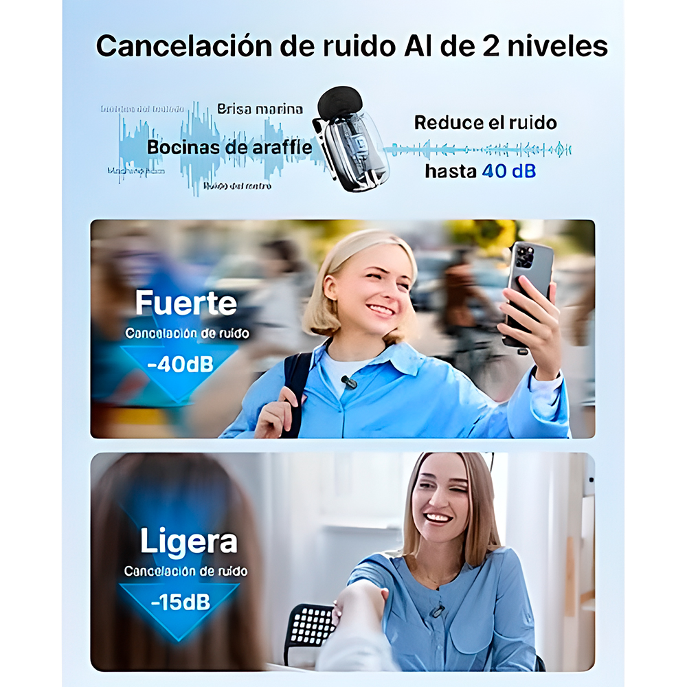 2. Cancelamento de Ruído Inteligente (AINC): Equipado com IA de 3ª geração, o dispositivo utiliza algoritmos treinados em mais de 700 mil amostras de áudio para isolar sua voz com precisão. Com um simples toque, você pode alternar entre o modo de supressão leve (-15 dB) ou forte (-40 dB), eliminando ruídos de vento, trânsito ou motores em milissegundos.