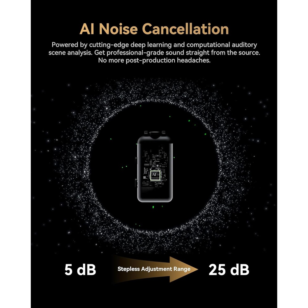 3. Cancelamento de Ruído Avançado por IA: Equipado com inteligência artificial de ponta, o Lark Max 2 isola a voz de forma cristalina mesmo em ambientes ruidosos, assegurando uma captação limpa e profissional para documentários, entrevistas e eventos ao vivo.