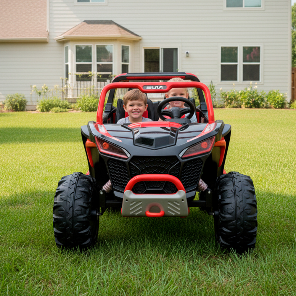 2. Alta Performance com Bateria 12V7AH: Equipado com uma potente bateria recarregável de 12V7AH, este quadriciclo elétrico garante maior tempo de uso e diversão ininterrupta. A alta capacidade da bateria suporta longos períodos de brincadeira, sendo perfeita para passeios prolongados.