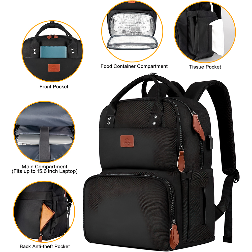 Mochila Matein Feminina de Trabalho com Cooler Térmico Integrado para Marmita, Compartimento Acolchoado para Notebook 15.6″, Porta USB e Design Moderno – Perfeita para Escritório e Dia a Dia