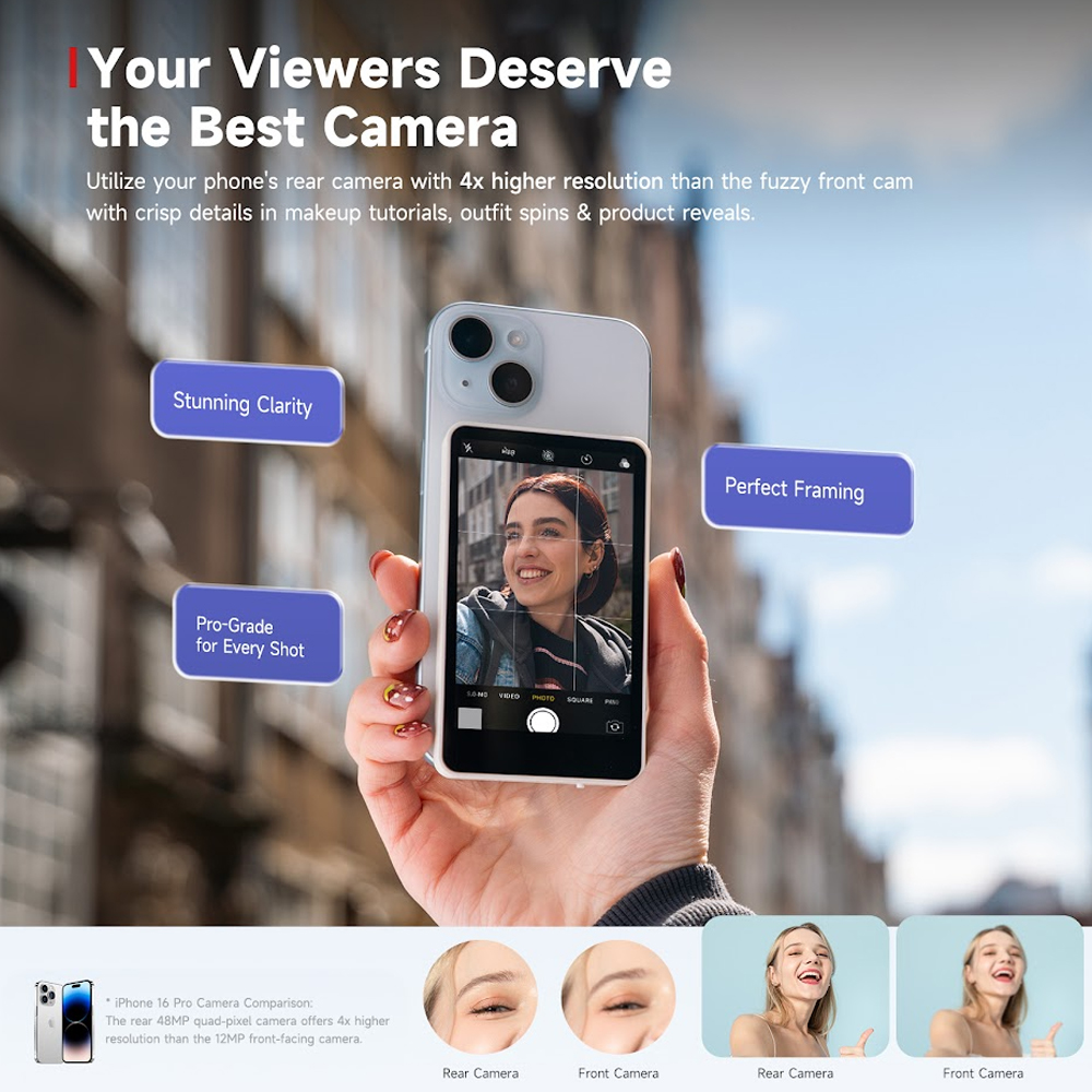 Monitor Selfie SYNCO XView M4 Para Vlogging e Live Stream Câmera Traseira Celular Android iOS – Tela Espelhamento MagSafe Sem Fio P2P Baixa Latência e Controle Remoto Bluetooth