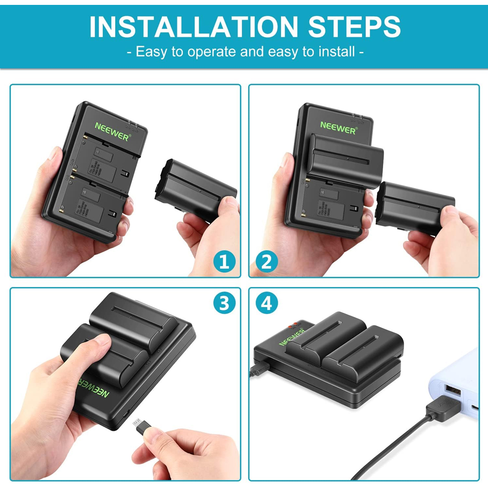 Neewer Carregador Duplo, Bateria NP-F550 Compatível Sony