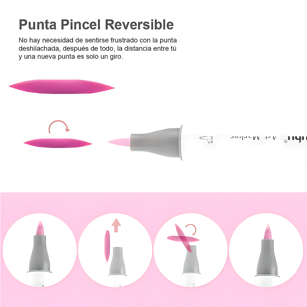 2. Ponta Dupla Versátil (Brush & Chisel): Maximize sua criatividade com a versatilidade das pontas duplas. A ponta Brush (pincel) oferece flexibilidade para traços finos e detalhes delicados, enquanto a ponta Chisel (cinzel) é perfeita para preenchimento rápido de grandes áreas e linhas robustas. Essa combinação torna as Canetas Marcador Ohuhu indispensáveis para qualquer técnica de desenho e ilustração.