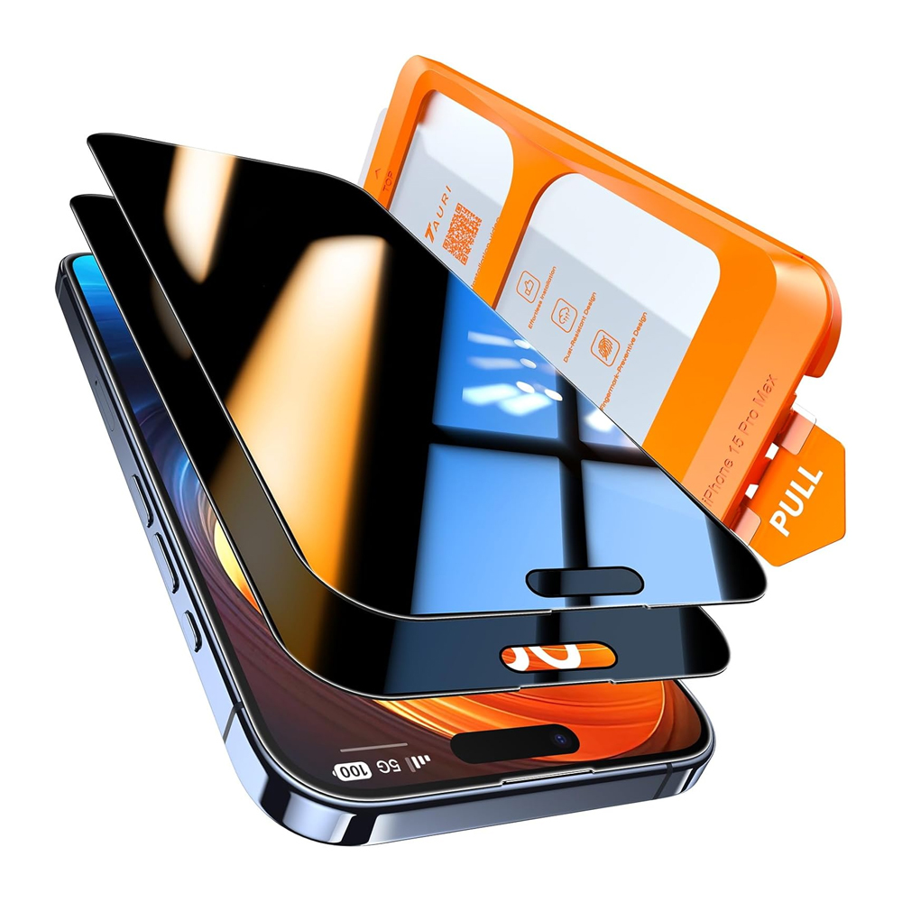 Película de Privacidade Tauri para iPhone 15 Pro Max com Aplicador, Vidro Temperado Anti-Reflexo e Anti-Arranhão, Proteção Completa de Tela com Privacidade