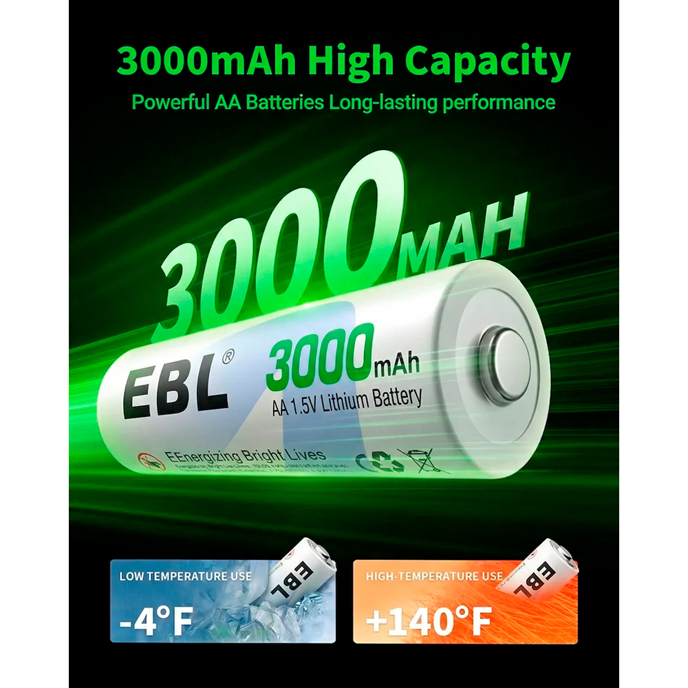 Experimente a eficiência das pilhas EBL Lítio AA 3000mAh, desenvolvidas com tecnologia avançada para oferecer duração prolongada e energia estável. Com voltagem de 1.5V, são ideais para dispositivos que exigem alta performance e confiabilidade, garantindo funcionamento contínuo e seguro por muito mais tempo.