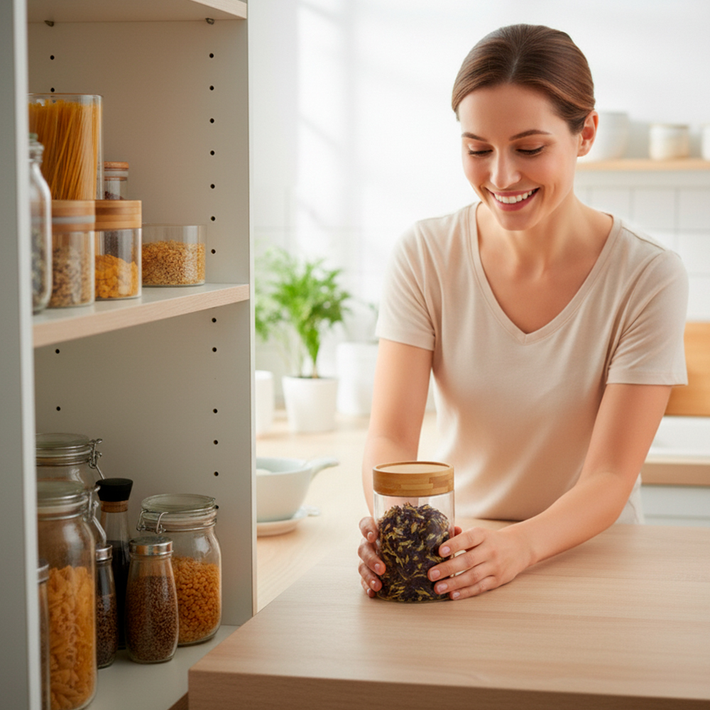 3. Organização Eficiente e Transparência: O design transparente do vidro permite que você visualize e identifique facilmente o conteúdo interno, economizando tempo na hora de cozinhar. Este pote organizador ajuda a manter sua cozinha e despensa arrumadas e sem desordem.