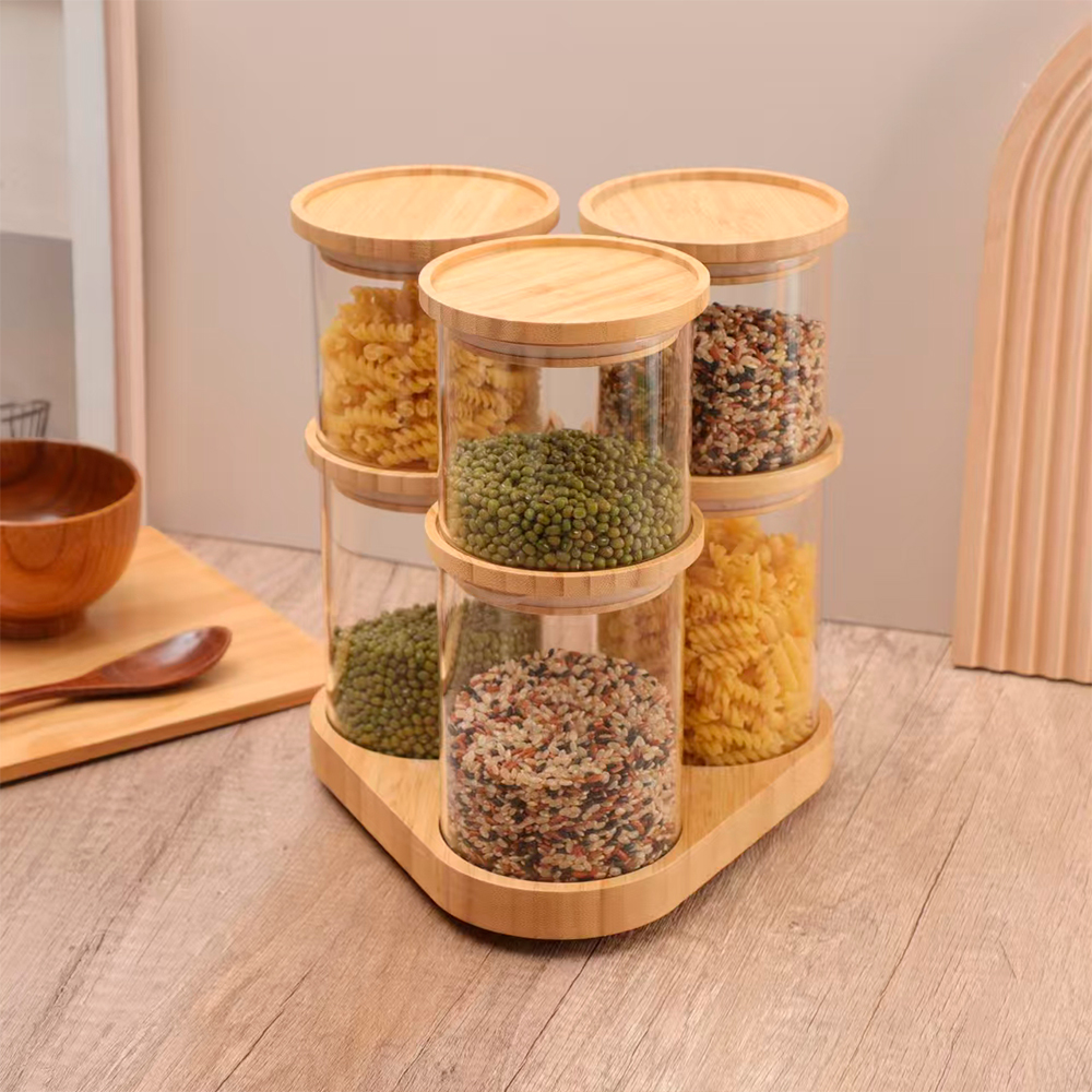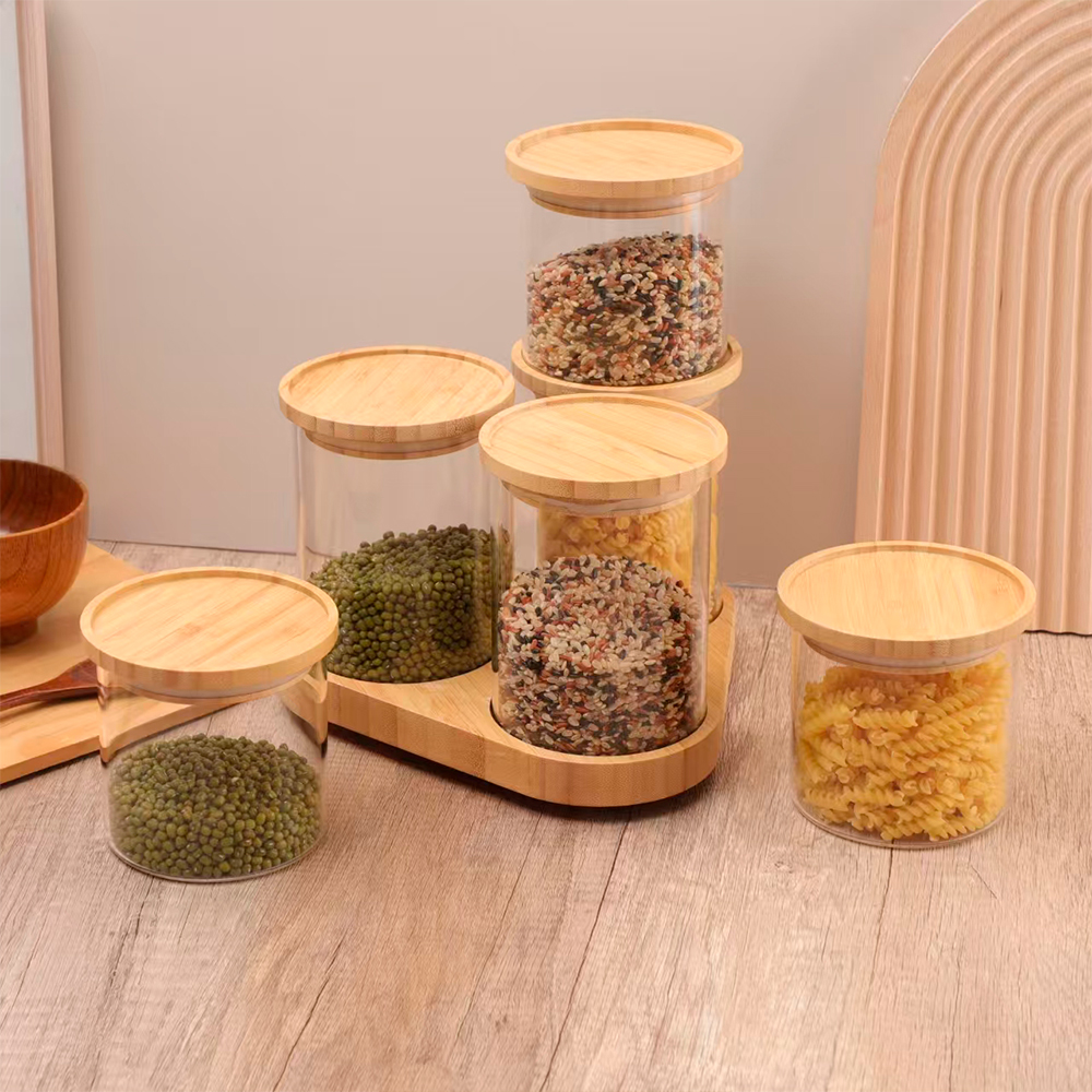 Potes de Vidro Life Com Tampa De Bambu Hermética, Recipiente de Borossilicato Para Armazenamento De Mantimentos, Organizador De Cozinha Para Café, Grãos, Biscoitos e Alimentos Secos, Design Empilhável
