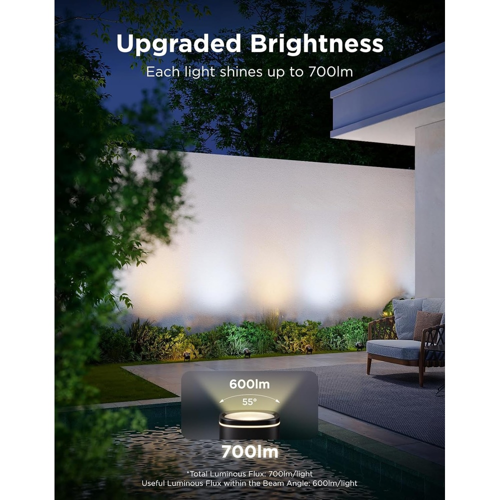 5. Através da conectividade inteligente, é possível ajustar o brilho, criar cronogramas de funcionamento e personalizar tons de branco puro (W) para iluminação funcional. O kit com 2 peças é fácil de instalar, proporcionando uma cobertura de luz ampla e eficiente para destacar os melhores pontos do seu projeto paisagístico.-Garantia 90 Dias MARCA: Govee SKU: 11381 R.NUMBER: H7093311 EAN: 6974316993353