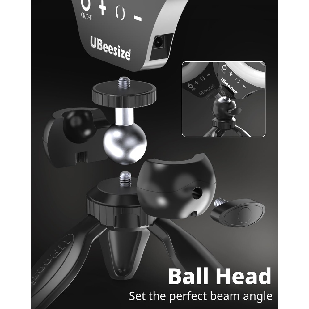 O kit Ubeesize é fácil de montar e desmontar, sem necessidade de ferramentas. Seu design compacto e leve permite transporte prático, transformando qualquer ambiente em um estúdio portátil, seja em casa, no trabalho ou em viagens.