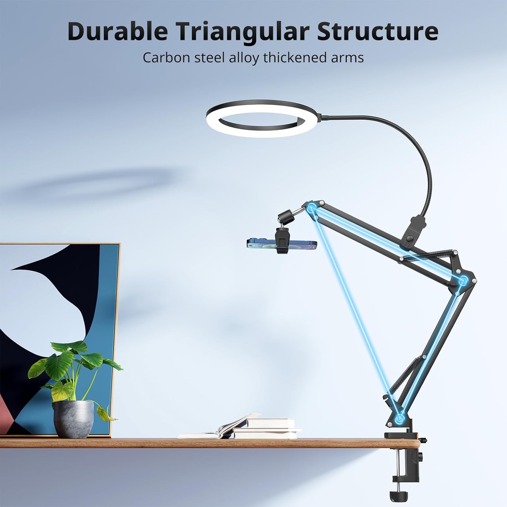 Melhore a qualidade das suas produções com o Ring Light Ubeesize de 10 polegadas, desenvolvido para criadores de conteúdo. O kit inclui suporte de celular overhead, ideal para gravações de culinária, artesanato, unboxings e demonstrações detalhadas em ângulo superior. Garanta vídeos mais claros, profissionais e bem iluminados para qualquer projeto criativo.