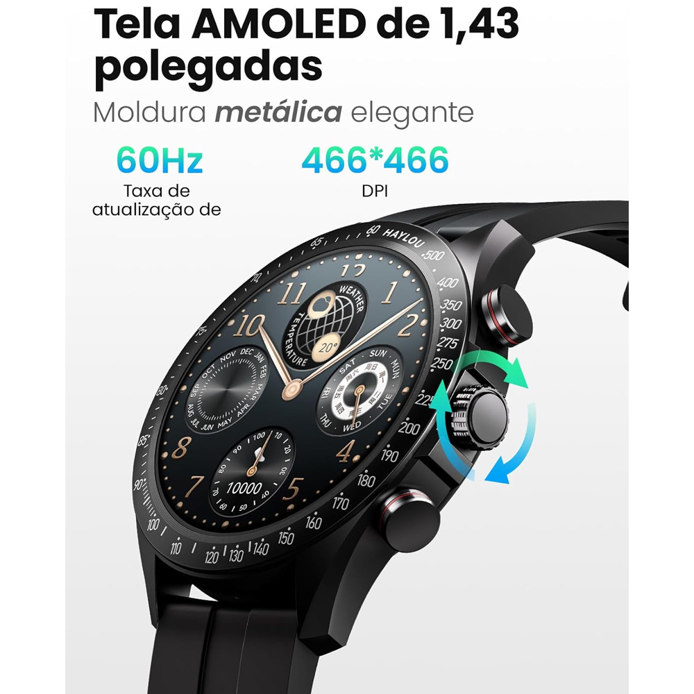 Relógio Inteligente Haylou Solar Pro LS18 – Display AMOLED 1.43″, Chamadas Bluetooth, 105 Modos Esportivos, Bateria de Longa Duração, Design Resistente