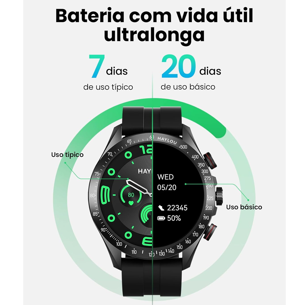 Com uma bateria de 300mAh, o Haylou Solar Pro LS18 oferece até 7 dias de uso com uma única carga, permitindo que você aproveite suas funcionalidades por mais tempo sem a necessidade de recarga constante. Garantia 90 dias