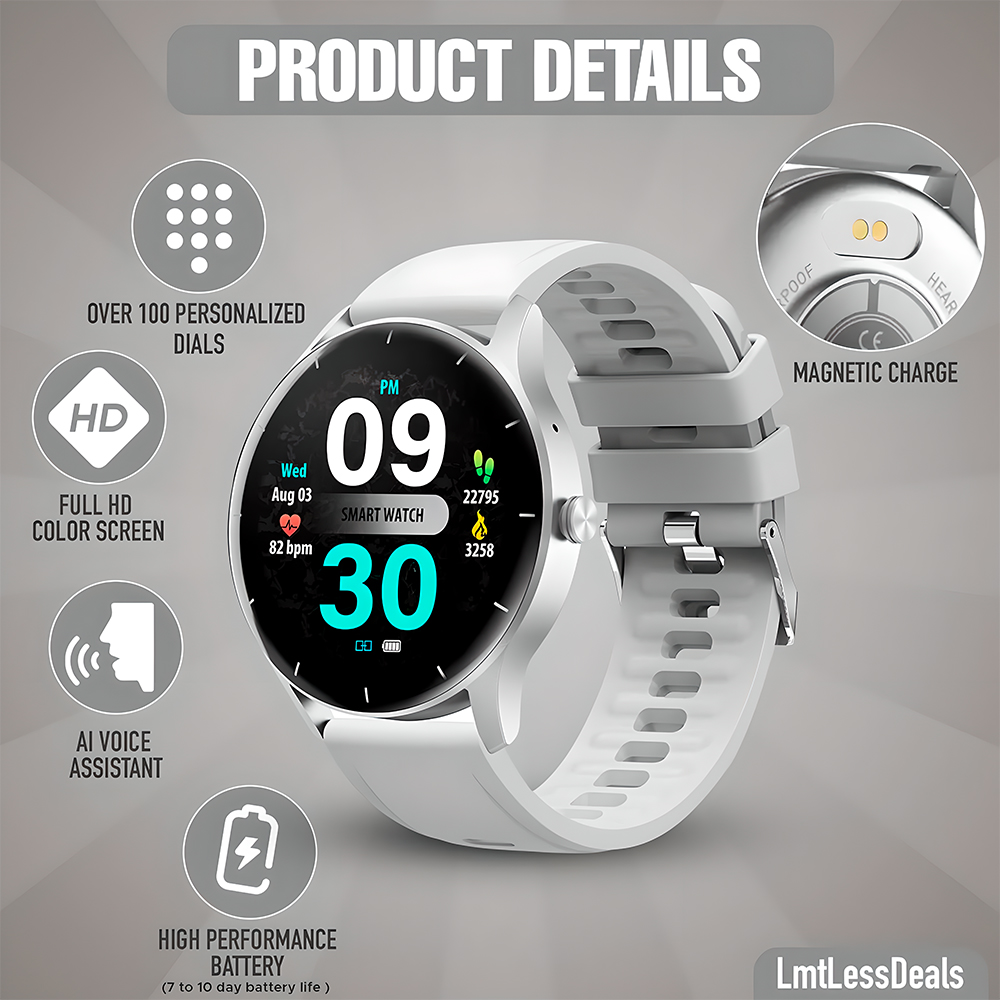 4. Com design moderno e elegante, disponível nas cores Preto e Prata, o smartwatch combina estilo e funcionalidade. A bateria de longa duração garante mais tempo de uso sem recargas frequentes.