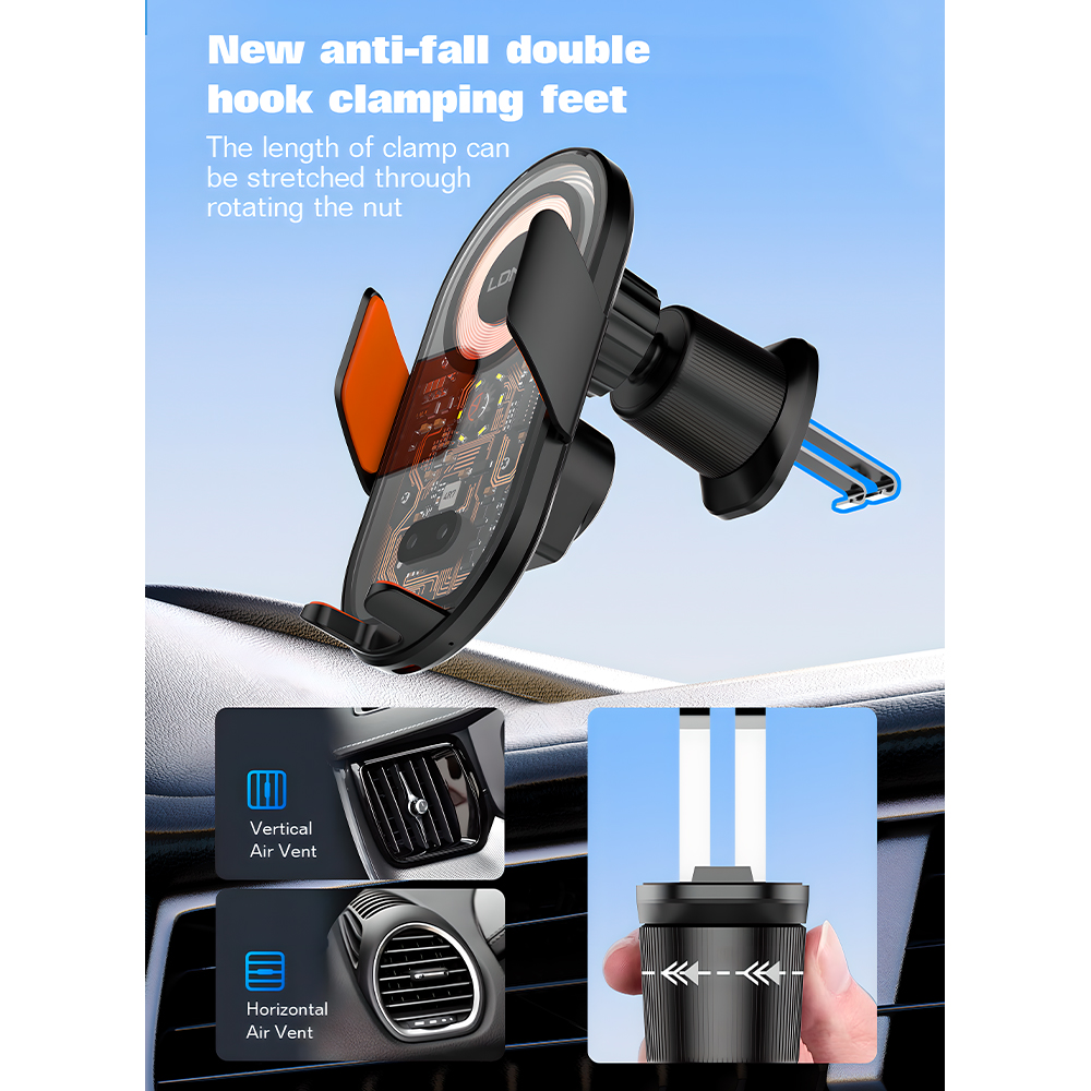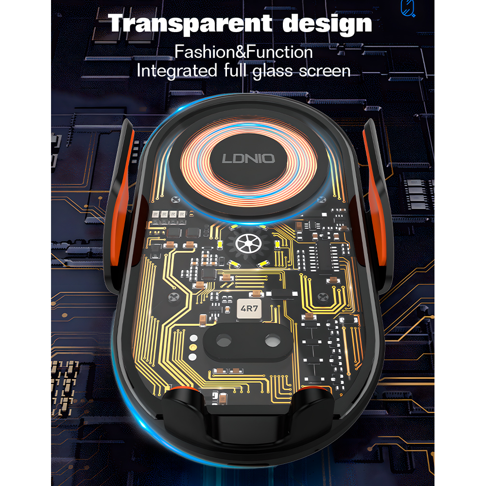 ldnio Suporte Carregador Veicular Sem Fio 15W com Sensor Infravermelho Automático para Celular, Fixação Ventosa Painel e Para-brisa, Rotação 360°, Carga Rápida Tipo-C para Carro