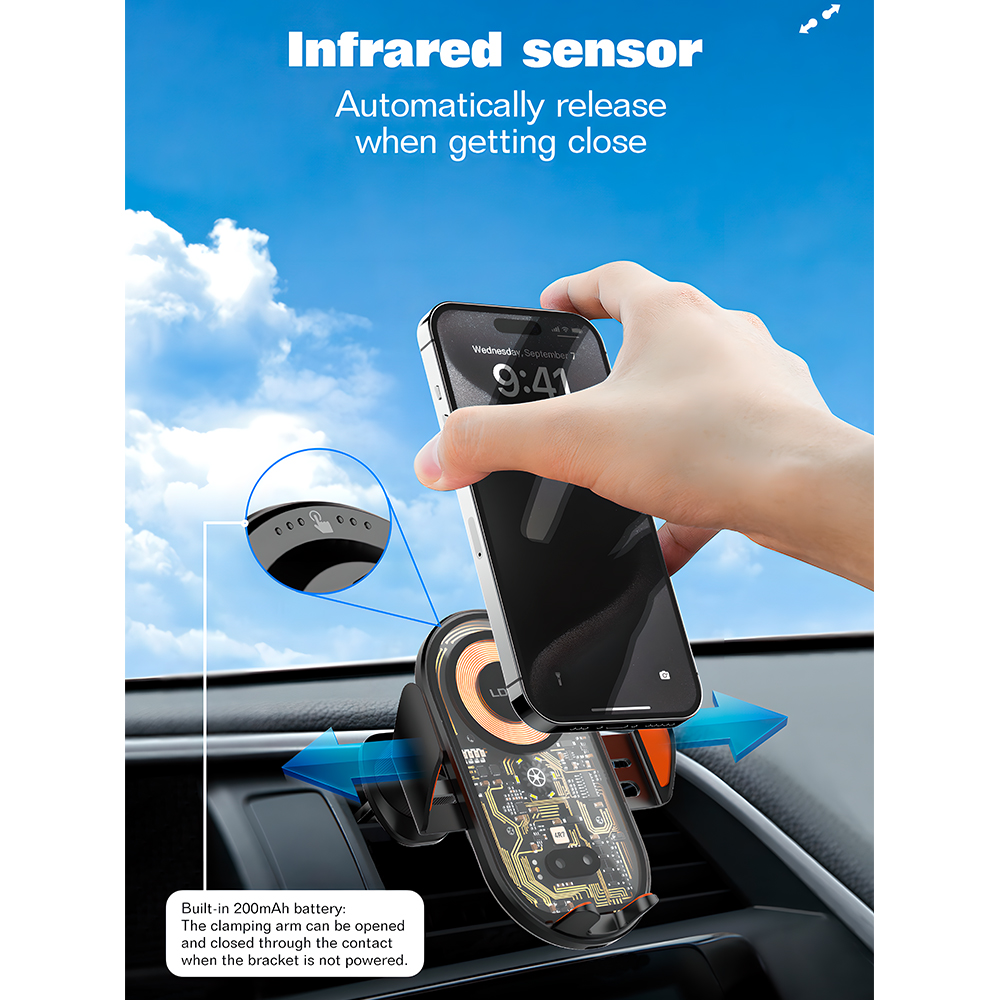 2. Sensor Infravermelho Automático Inteligente: O suporte automotivo LDNIO MA30-1 possui um sensor infravermelho que detecta seu smartphone e abre automaticamente, travando-o com segurança ao posicionar. Proporciona praticidade e manuseio fácil com apenas uma mão.