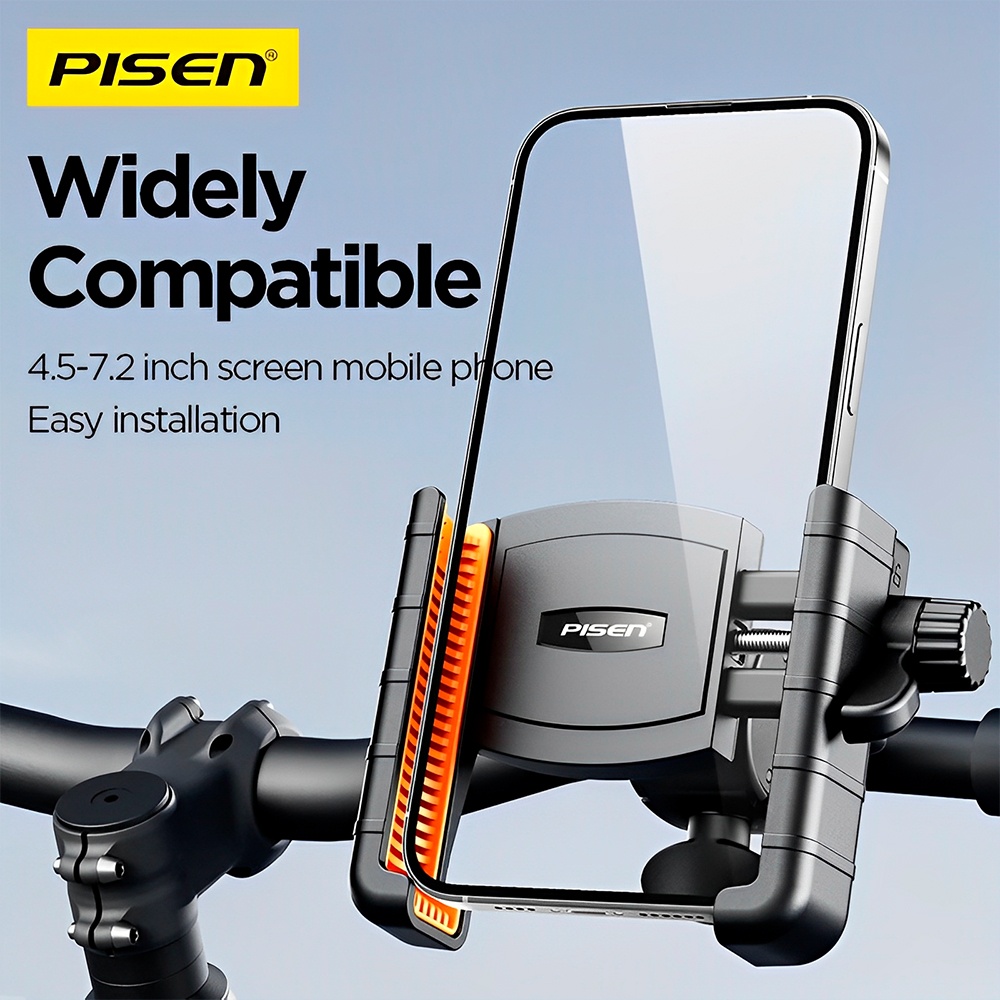 Suporte Celular Ciclismo Pisen TP-ZJ01 para Guidão Preto – Ajuste 360°, Compatível com Telefones de 4,5 a 7,2 Polegadas, Alta Fixação