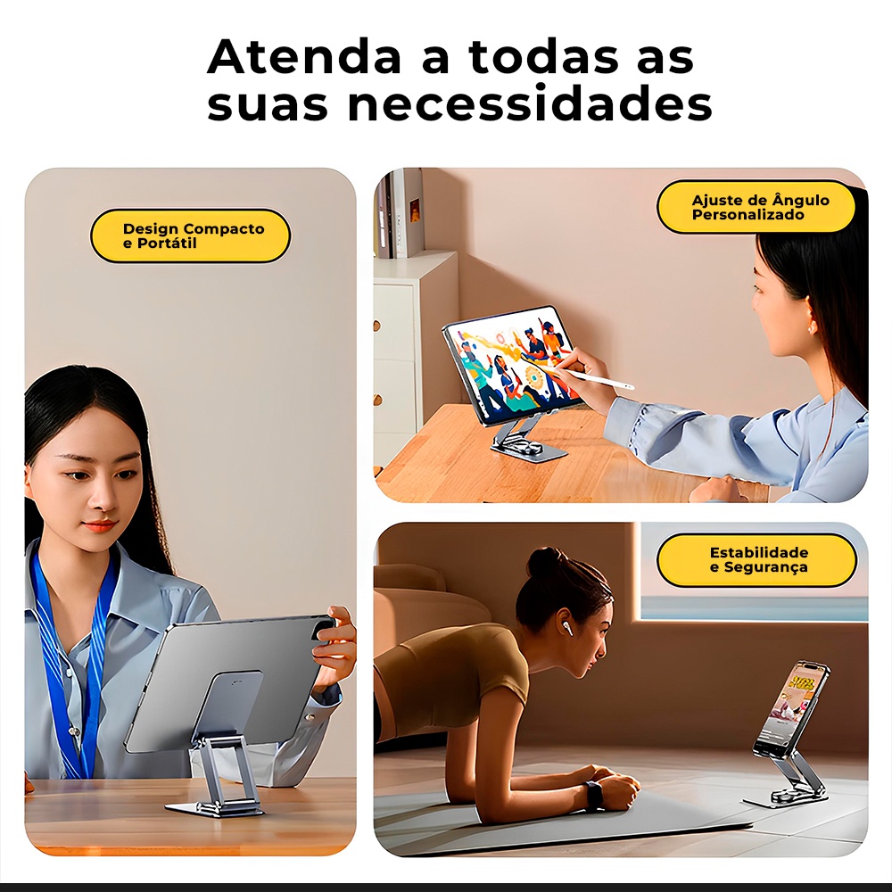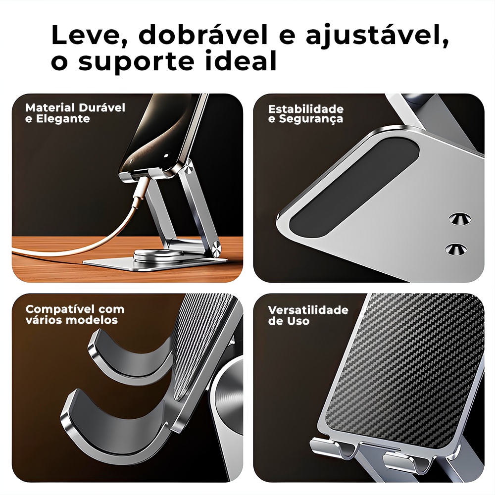 2. Ajuste de Ângulo Personalizado: Com a capacidade de ajustar o ângulo de visualização, o suporte permite uma experiência ergonômica ao usar seu smartphone. Perfeito para assistir vídeos, videochamadas ou realizar leituras sem forçar a postura.