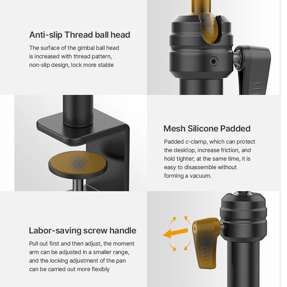 Suporte de Mesa para Câmera Ulanzi VIJIM LS10 com Cabeça Esférica 1/4, Altura Ajustável 41-86cm, Grampo C Removível e Base Pesada, Liga de Alumínio para Fotografia, Microfone e Transmissão ao Vivo