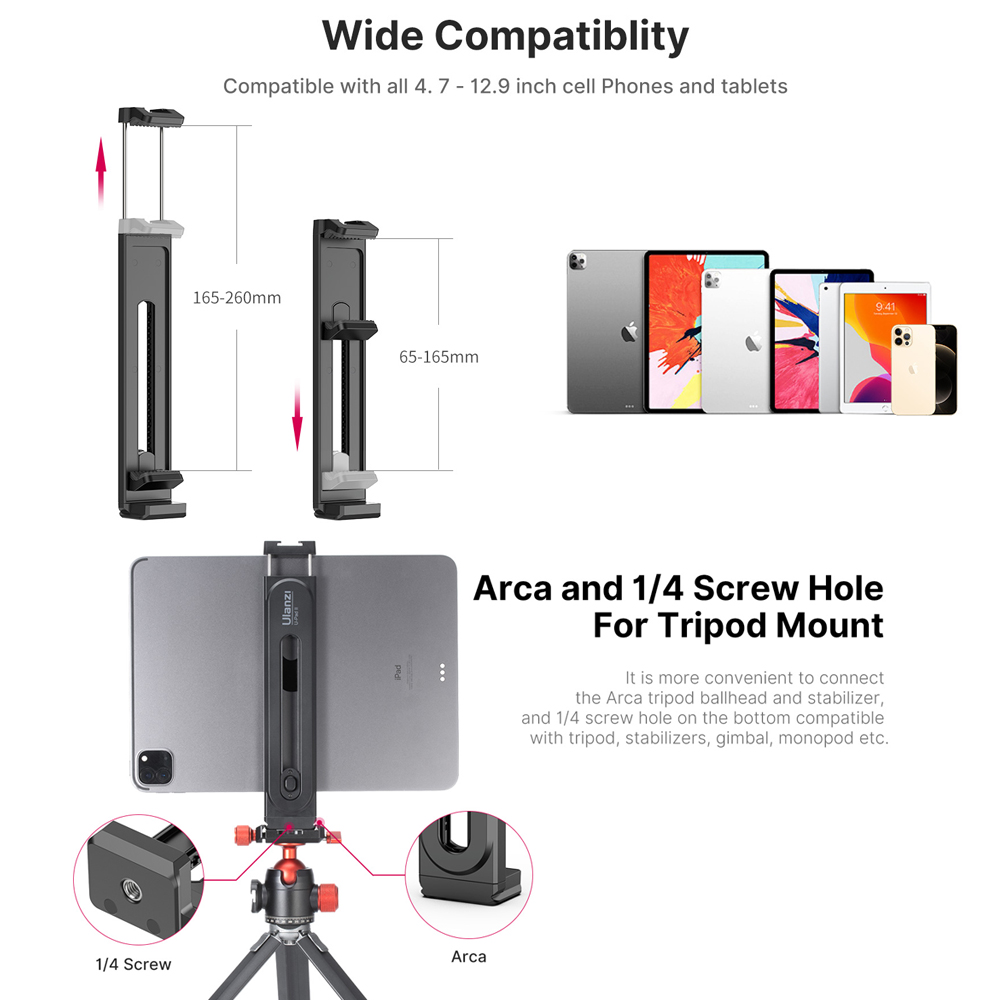Suporte de Tripé Ulanzi U-Pad II para Smartphone e Tablet, Ajuste 6,5 a 26cm, Montagem Arca/1⁄4″ e Sapata Fria Integrada