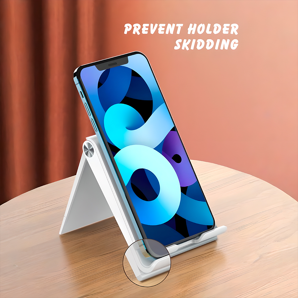 4. Base e Tapete De Silicone Antiderrapante: A segurança do seu aparelho é prioridade. Equipado com Tapetes de Silicone Antiderrapante no apoio e na base, este suporte evita que o celular ou tablet escorregue e protege a superfície da sua mesa contra riscos e arranhões, mantendo o dispositivo estável em todos os momentos.