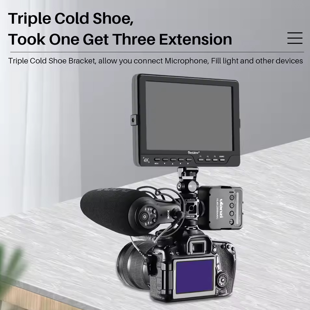 1. O suporte triplo cold shoe Ulanzi PT-12 amplia as possibilidades da sua câmera, oferecendo três pontos de montagem para acessórios como luzes LED, microfones, monitores e flashes. Ideal para fotógrafos, cinegrafistas, vloggers e criadores de conteúdo que buscam um setup mais completo e versátil.
