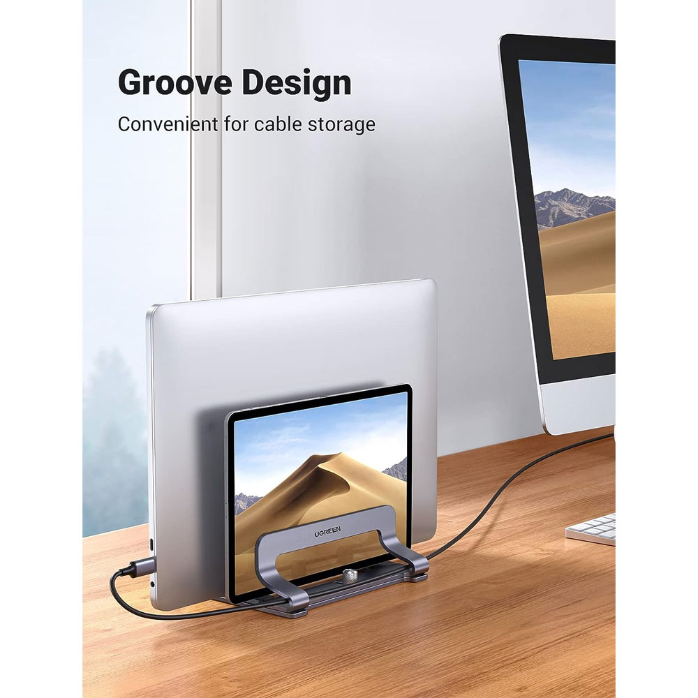 Suporte Vertical Notebook Ugreen Slot Duplo para Mesa Prata