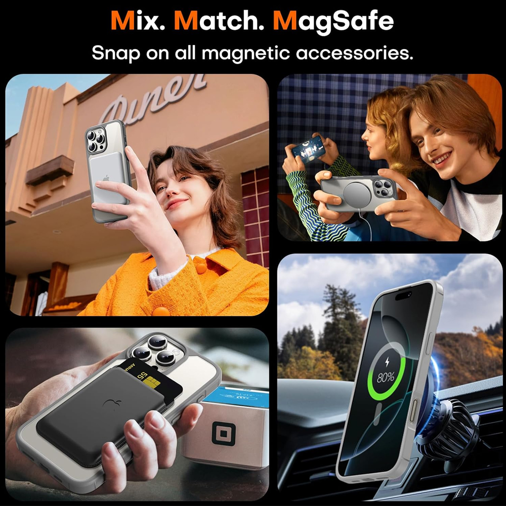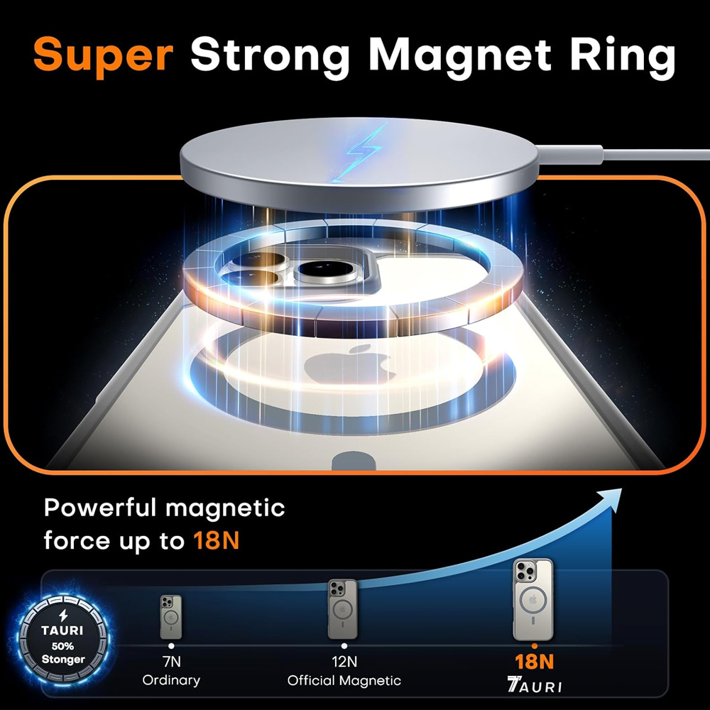 1. Atração Supermagnética: A capa Tauri para iPhone 16 Pro 6.3 é equipada com 38 ímãs N52, oferecendo uma força magnética de até 18N, mais de 50% mais forte que a capa magnética oficial. É compatível com acessórios magnéticos e carregadores sem fio Qi, proporcionando carregamento rápido e eficiente.