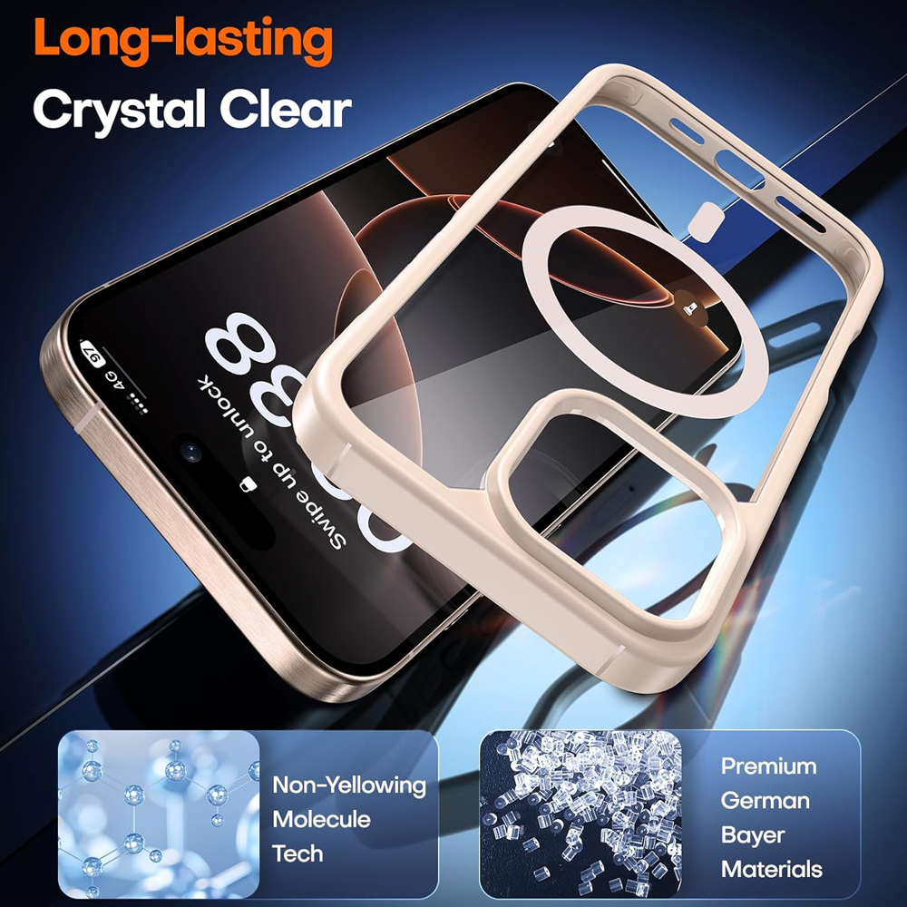 Capa TAURI 3 em 1 para iPhone 16 Pro Max, Compatível com MagSafe, Proteção de Nível Militar, 2 Protetores de Tela 9H, Capa Magnética à Prova de Choque, Design Fino e Não Amarela, Cor Deserto