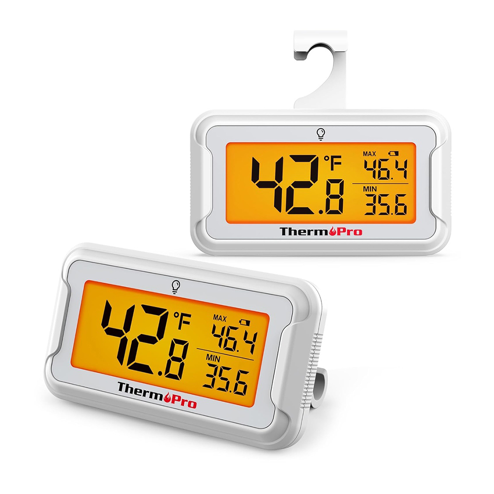 ThermoPro TP110 Kit 2 Termômetros Digitais para Geladeira e Freezer – Medidor de Temperatura Preciso para Monitoramento de Alimentos e Bebidas com Display de Leitura Prática