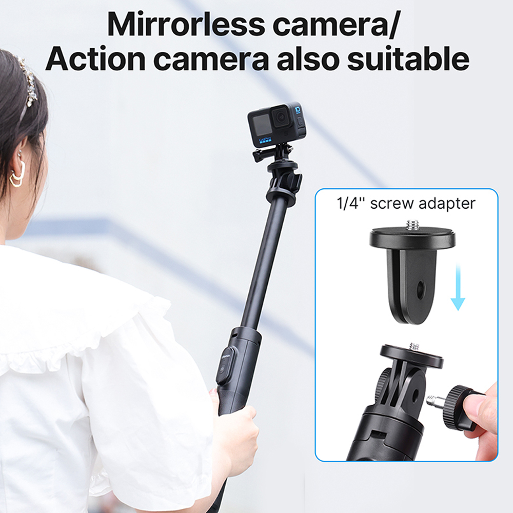 Seu design extensível proporciona a altura ideal para diferentes enquadramentos, desde capturas de ângulos baixos até fotos de corpo inteiro.