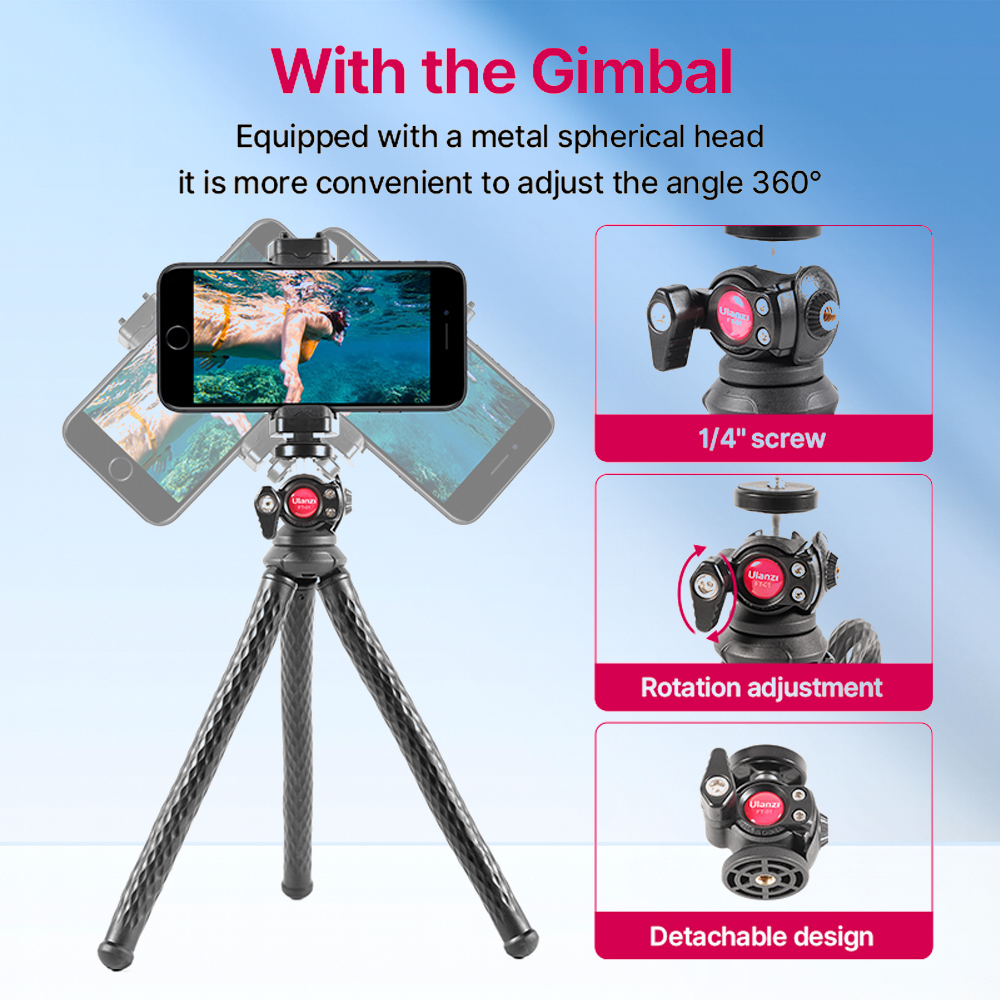 Tripé Flexível Ulanzi FT-01 Mini Octopus com Sapata Fria, Cabeça Esférica e Parafuso 1/4″ para Câmera e Smartphone
