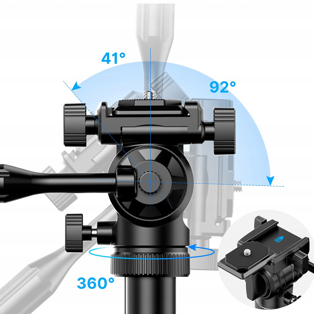 3. Cabeça Panorâmica com Movimentos Suaves: Equipada com rotação de 360° e controles independentes de fricção, a cabeça de vídeo permite transições fluidas e precisas, contando ainda com nível de bolha integrado para um alinhamento perfeito do horizonte.