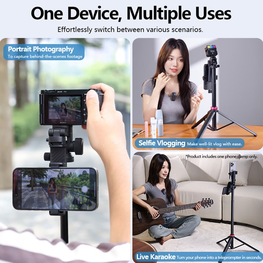 Equipado com dois suportes para sapata fria, grampo para telefone e placa de liberação rápida 1/4″, o Ulanzi MT-78 é compatível com câmeras, smartphones, luzes LED e microfones, permitindo setups completos para gravações e fotografia.