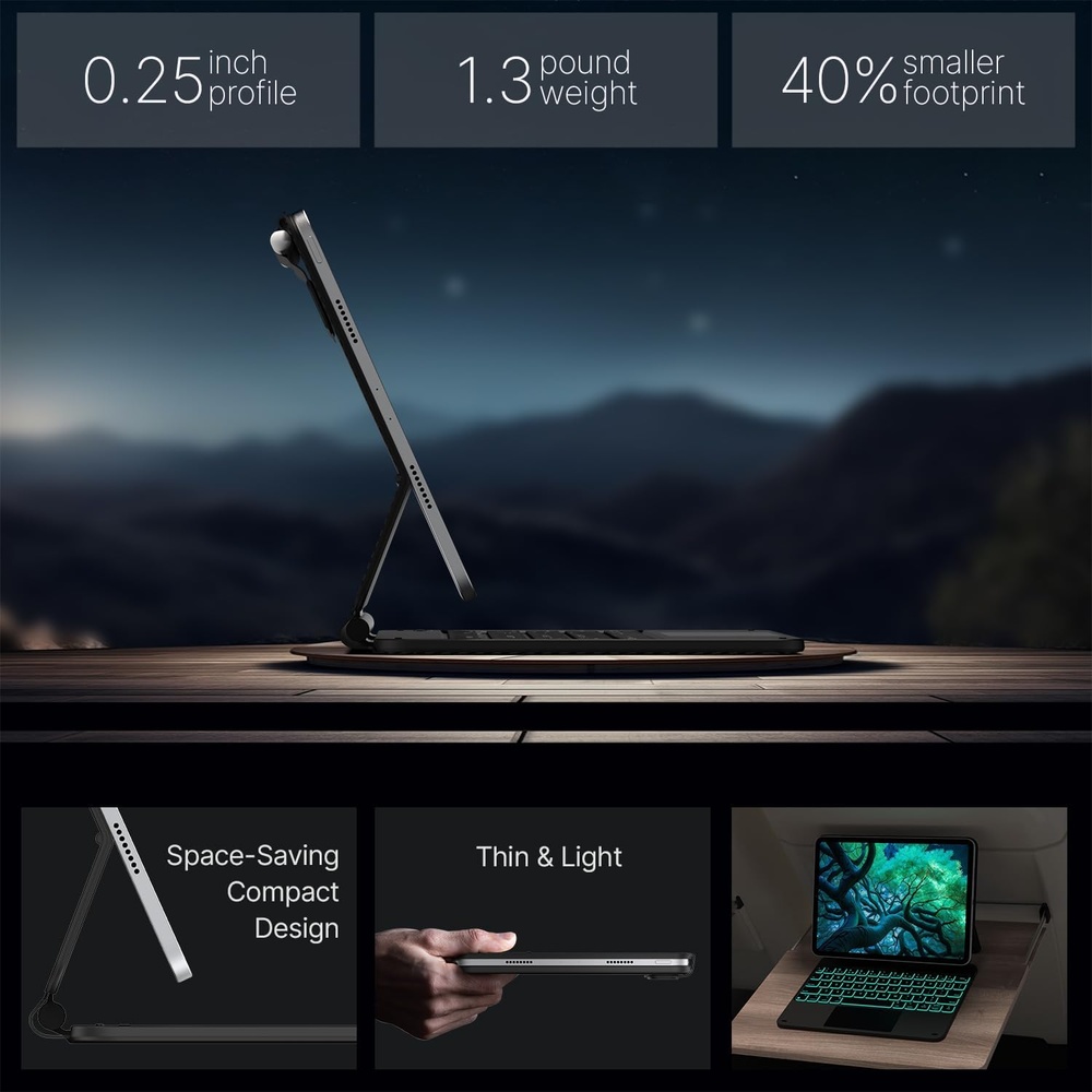2. Desfrute da precisão e fluidez do Trackpad Multi-Touch, que suporta todos os gestos intuitivos do iPadOS. Navegue, edite documentos e realize tarefas com a conveniência de um laptop, otimizando sua experiência de estudo, trabalho e lazer diretamente no seu iPad.