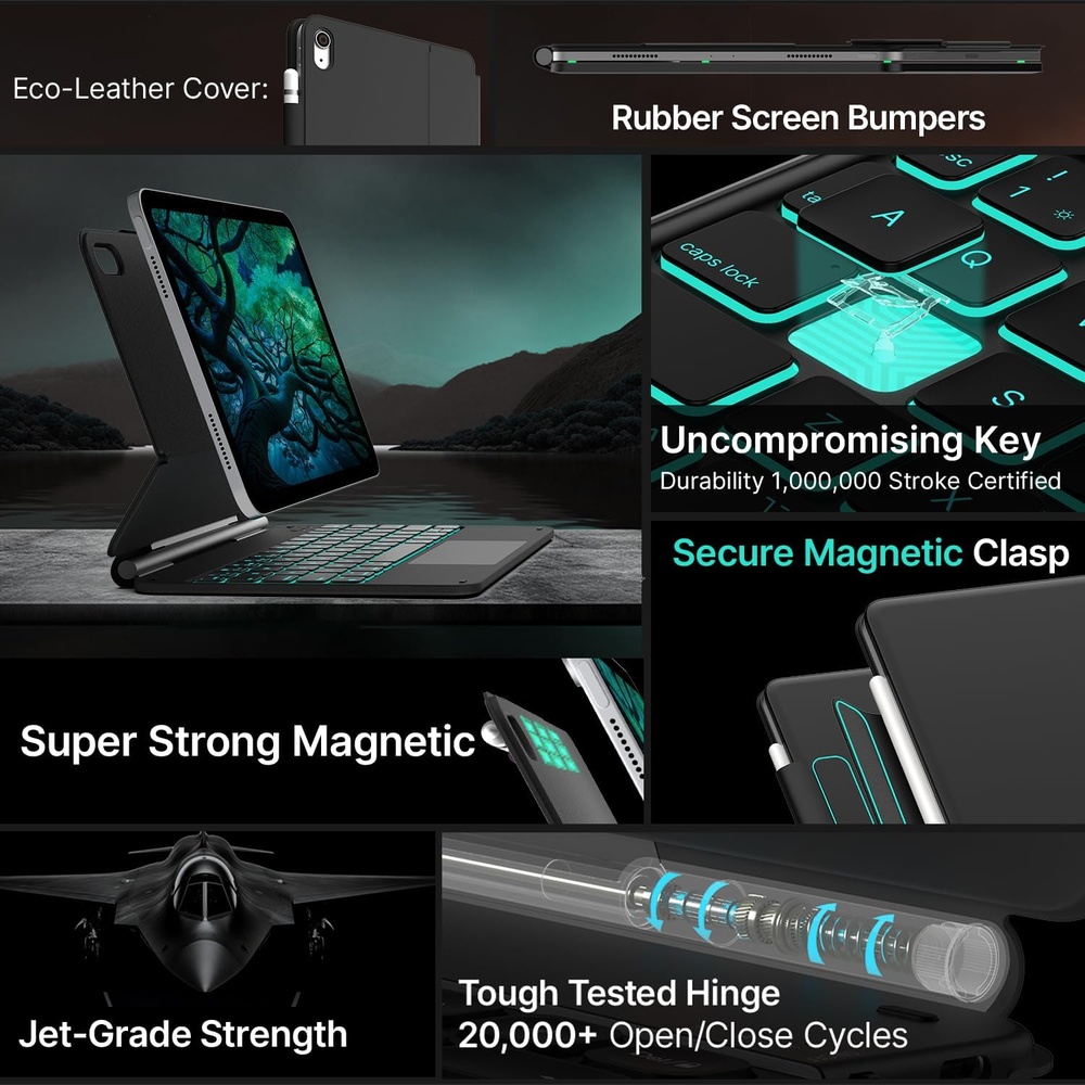 Typecase Edge Keyboard Case para iPad 10ª Geração 10.9″ 2022 e 11ª Geração (2025) – Capa Teclado com Trackpad Multi-Touch, Teclas Retroiluminadas, Proteção Premium – Transforme seu iPad em Notebook. Modelo KB206-100-D-BLK-BLK-B-US-V5B, Cor Preto