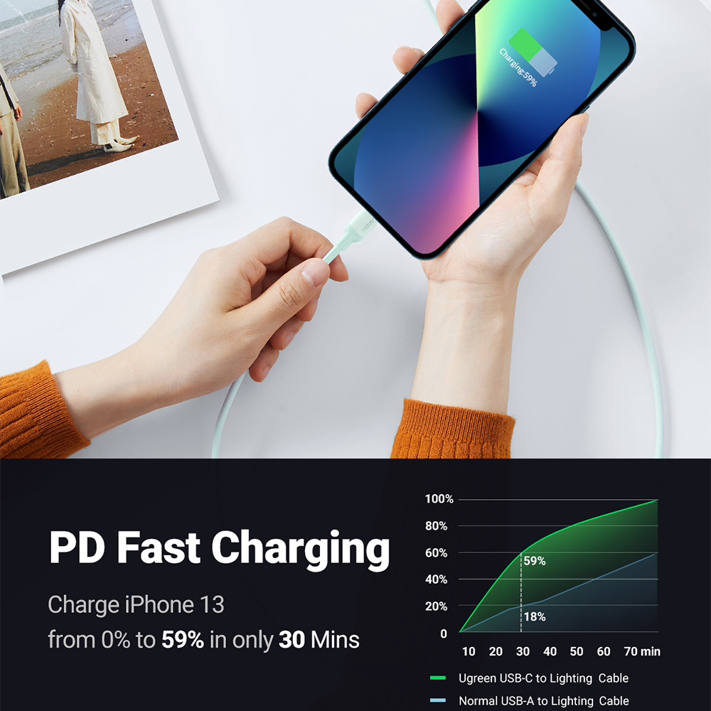 Ugreen Cabo Carregador iPhone Lightning Usb-C Cert. MFi 1M