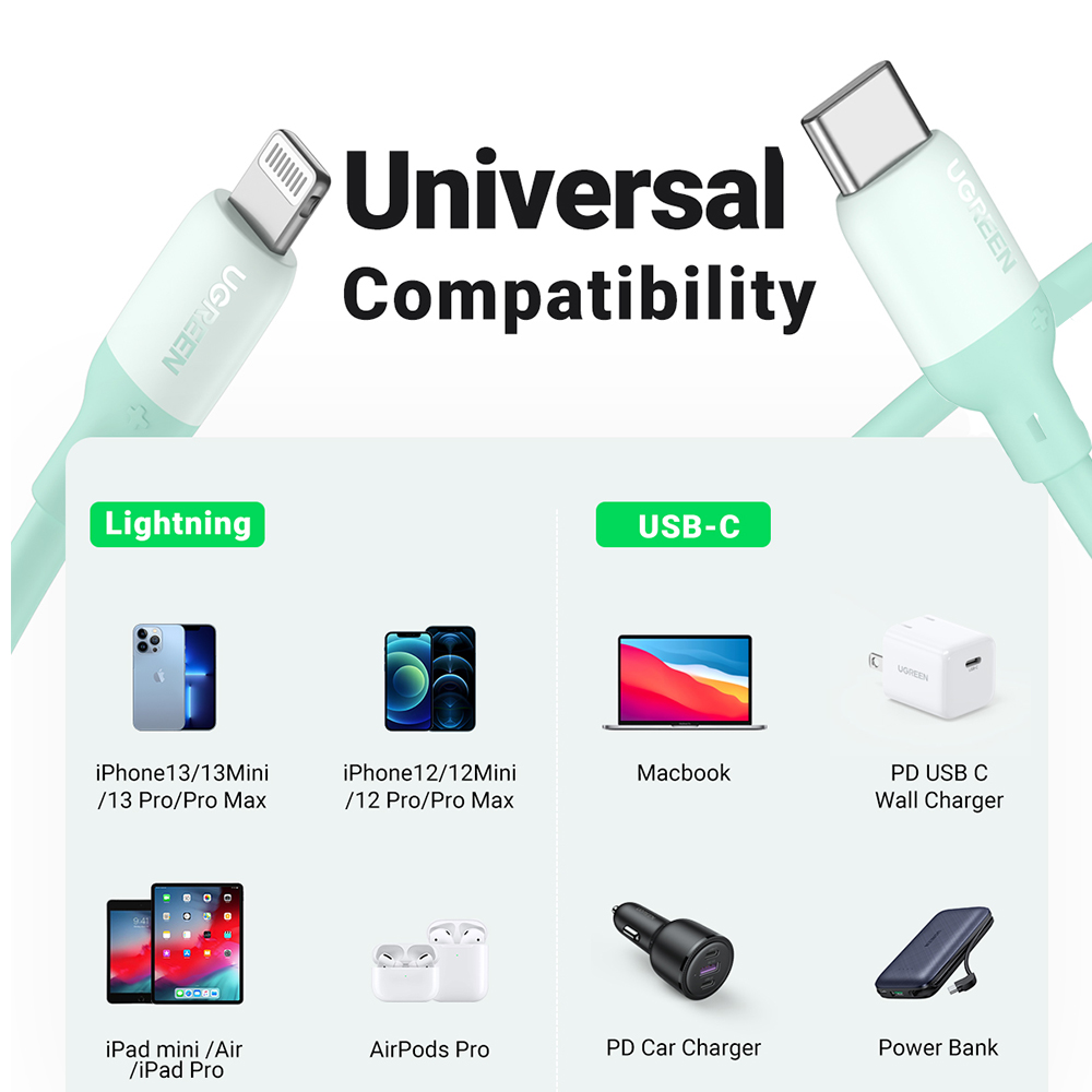 UGREEN USB-C to Lightning Silicone Cable 1m (Green) 20308