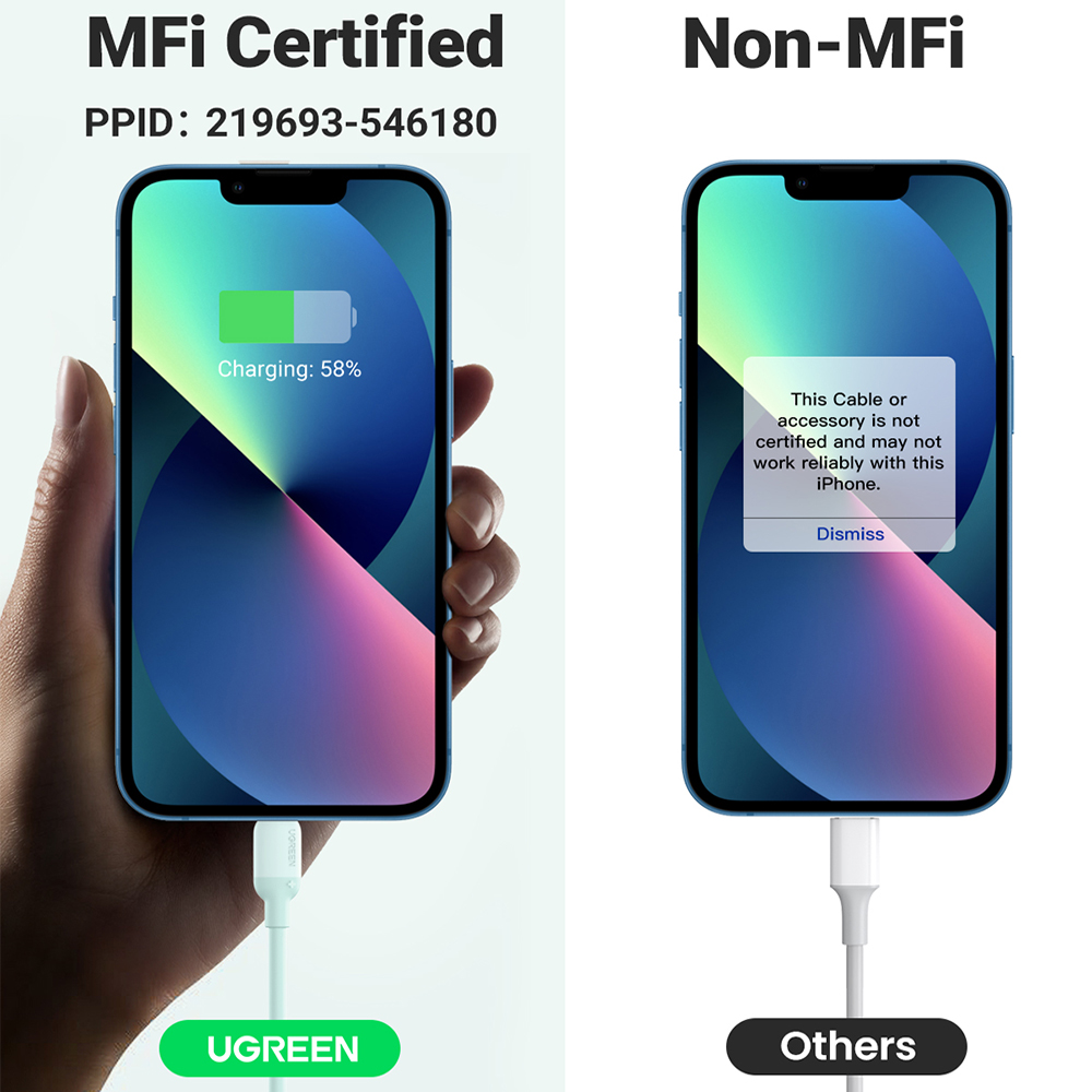 Ugreen Cabo Usb C para Lightning Carregador iPhone Certificação MFi 1 Metro Comprimento Carregamento Sincronização Dados Cabo de Carregamento Rápido PD Velocidade Transferência até 480Mbps / No Brasil