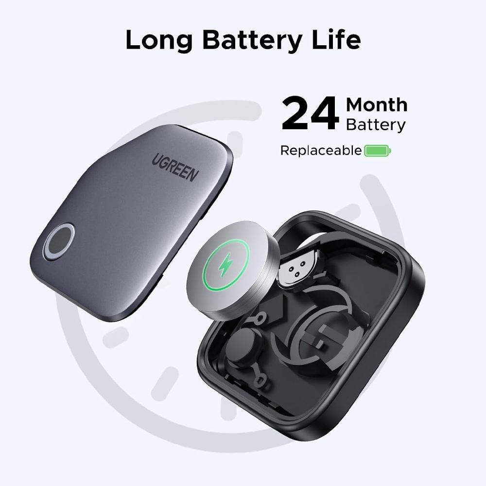4. Bateria de Longa Duração e Substituível: Equipado com uma bateria de até 2 anos de duração, o Ugreen FineTrack oferece performance confiável sem preocupações. A bateria é facilmente substituível pelo usuário, garantindo uma vida útil estendida para o seu rastreador Bluetooth e maior comodidade.