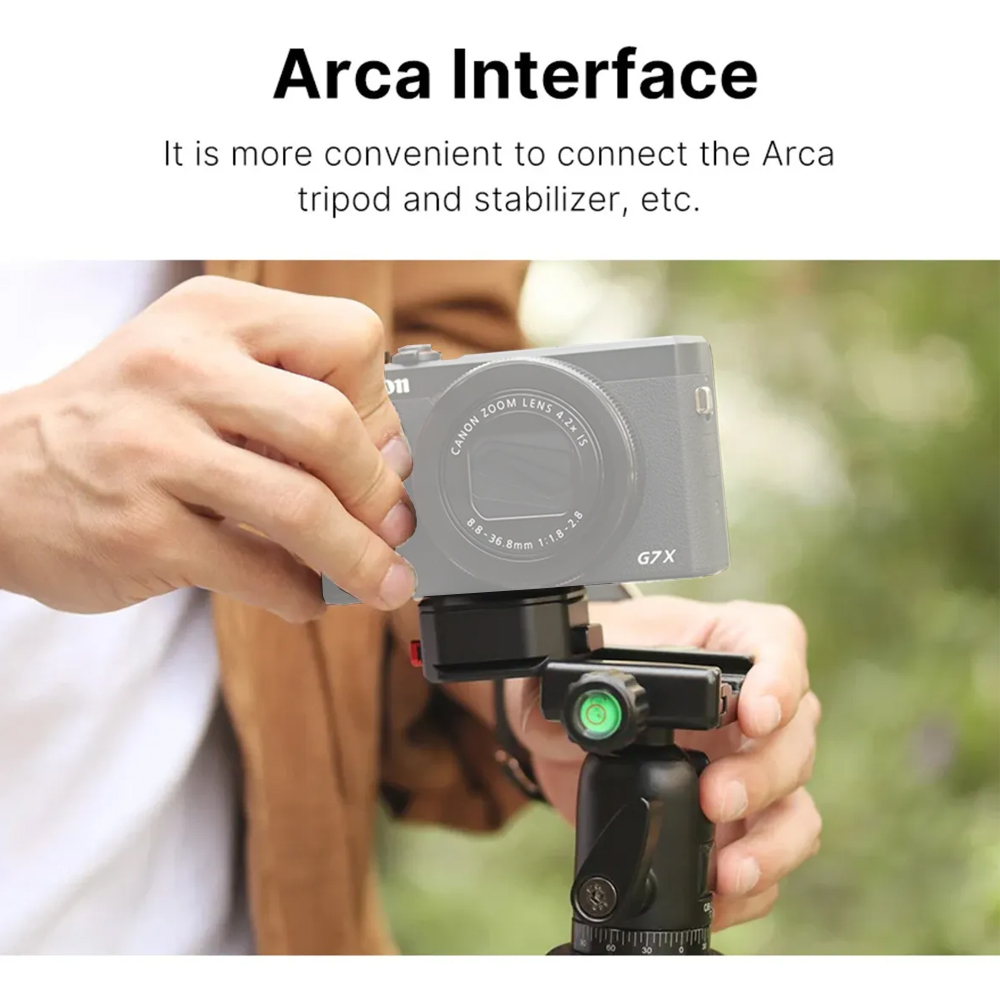 2. Compatibilidade Universal Arca-Swiss: Desenvolvida para máxima versatilidade, esta base é totalmente compatível com o padrão Arca-Swiss, integrando-se perfeitamente com a maioria dos tripés, monopés, estabilizadores e sliders do mercado, expandindo suas possibilidades criativas.