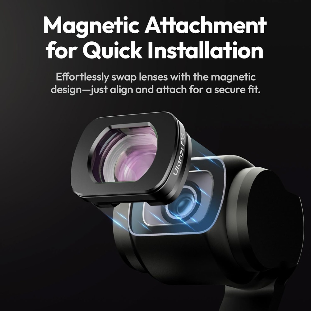 3.  Instalação Rápida e Segura: Desenvolvida para acoplagem prática e eficiente, a lente Ulanzi oferece uma solução de fácil instalação que se encaixa perfeitamente no seu DJI Osmo Pocket 3, sem comprometer a estabilidade ou a qualidade da imagem.