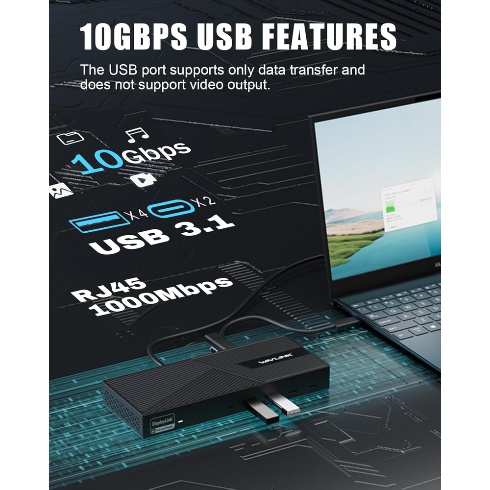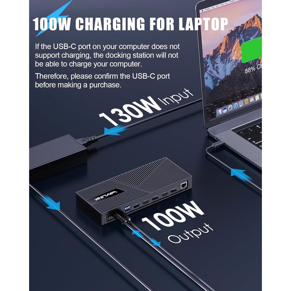 Wavlink Docking Station USB-C Displaylink para 3 Monitores (3x HDMI, 2x DisplayPort), Carregamento 130W Power Delivery, 10Gbps USB para MacBook M1 M2 M3 e Windows – Estação de Acoplamento