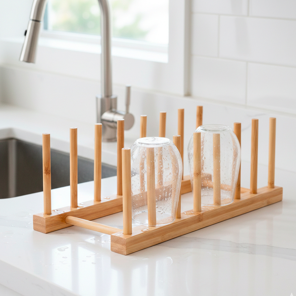 1. Descubra o Escorredor de Louça de Bambu Young Shiny, a solução ideal para organizar e otimizar sua cozinha. Essencial para uma secagem rápida e eficiente de seus pratos e copos, este acessório de cozinha oferece praticidade e elegância.