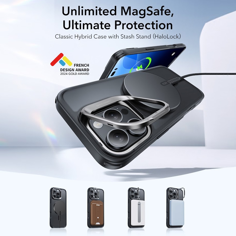 Capa iPhone 16 Pro Max Esr Cyber com Suporte Stash Cinza