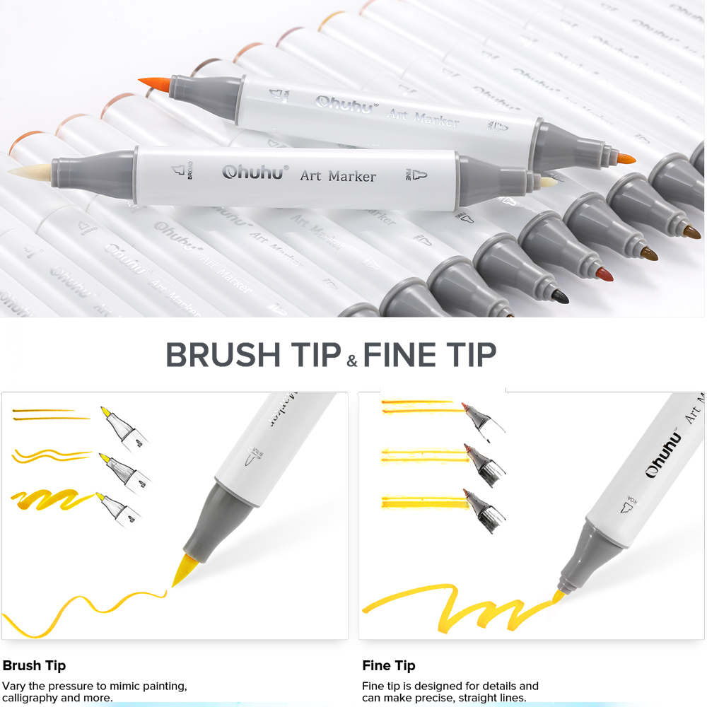 Ohuhu Marcadores Tons Pele Dual Brush Chisel Alcool Arte