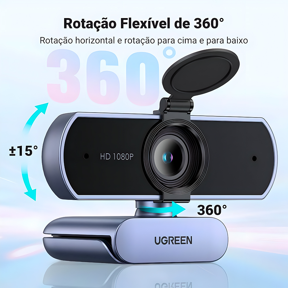 Webcam UGREEN 1080P Full HD 30FPS USB Microfone Duplo PC